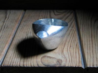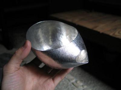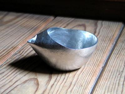 容器へ移しやすいように、注ぎ口も緻密に計算されています。通常の酒器などは厚みが2ミリ前後あるのに対し、この調合器は1ミリの厚みをしています。強度と耐久性を考慮し、限界まで薄くしました。非常に軽やかな器となりました。