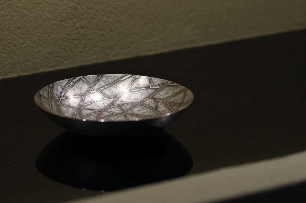 Using the traditional Japanese alloy as materials, including “Shakudo” (an alloy of copper and gold) and “Shibuichi” (an alloy of silver and copper), I have striven to create organic patterns from the color of metals.