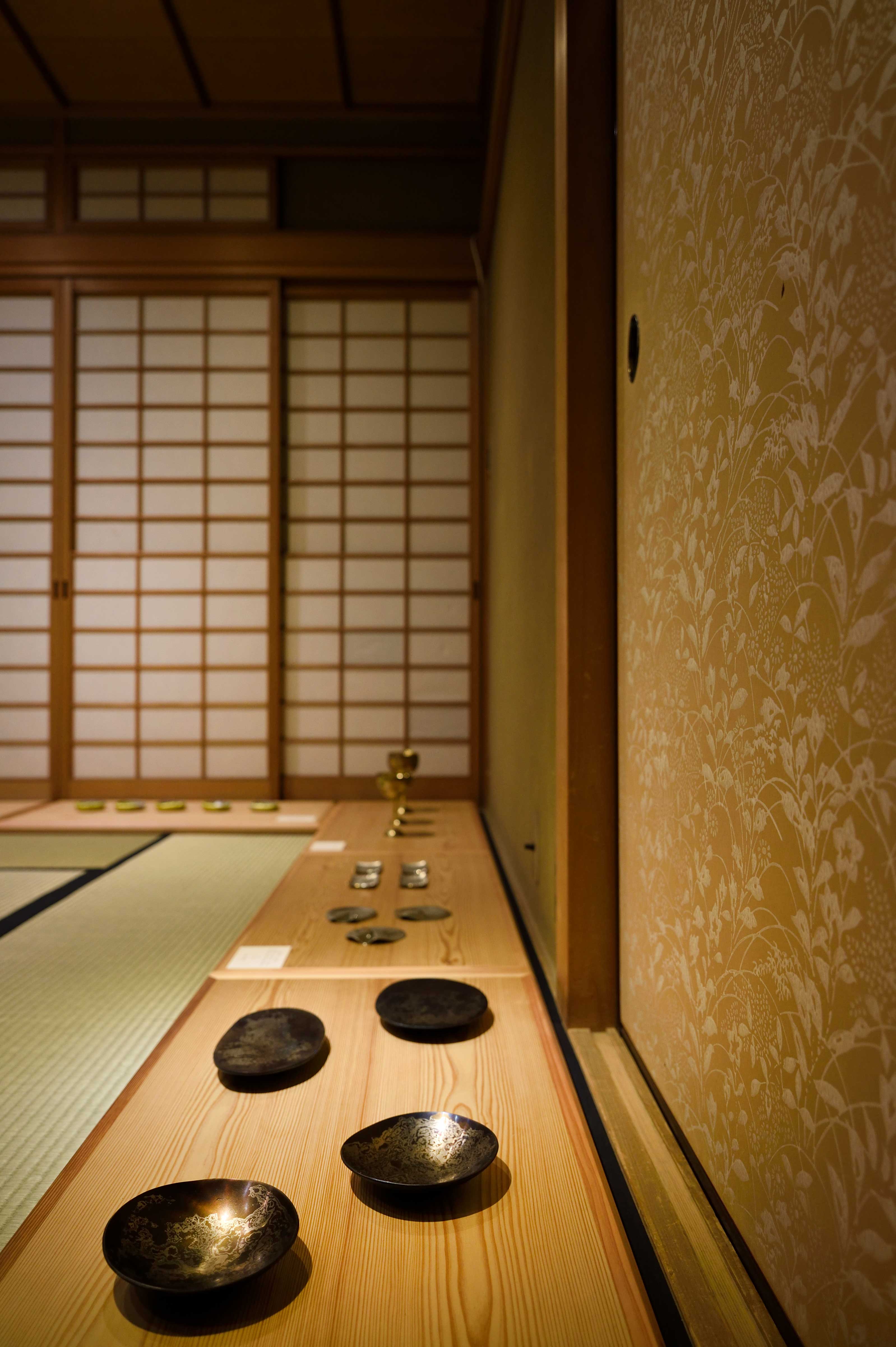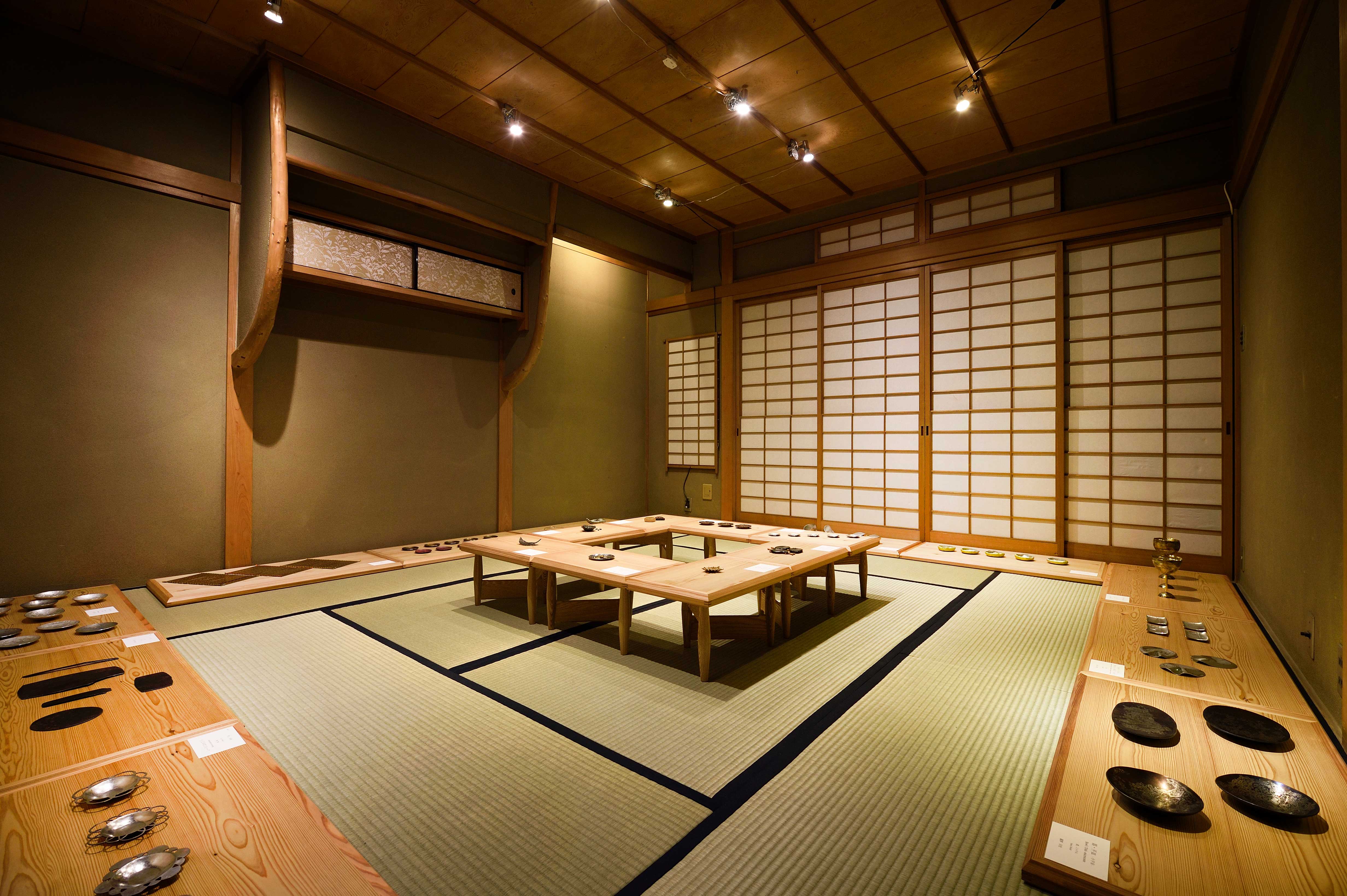 店舗奥の蔵・茶室・和室を用いて、金属工芸品の常設展を開催しております。