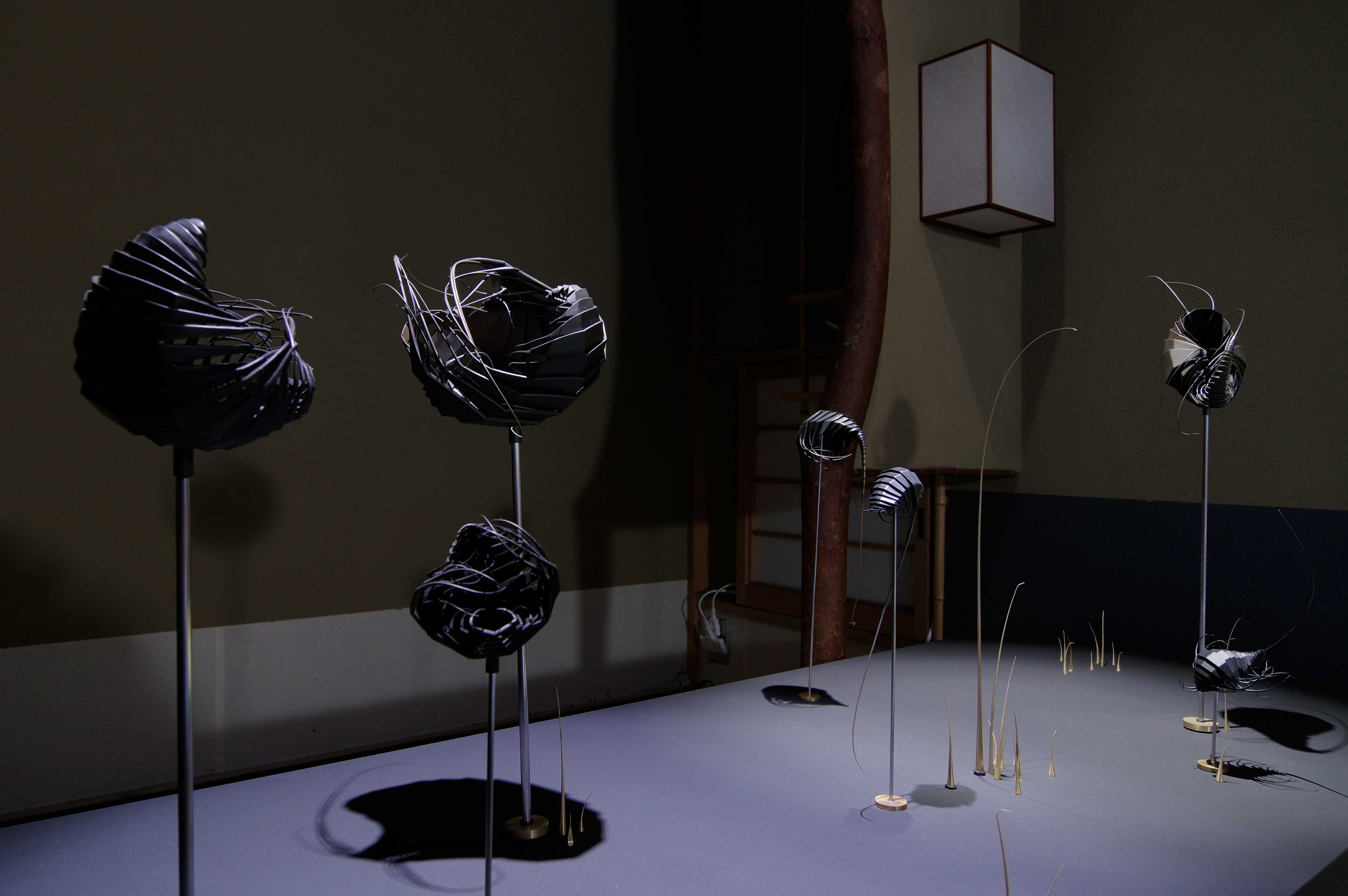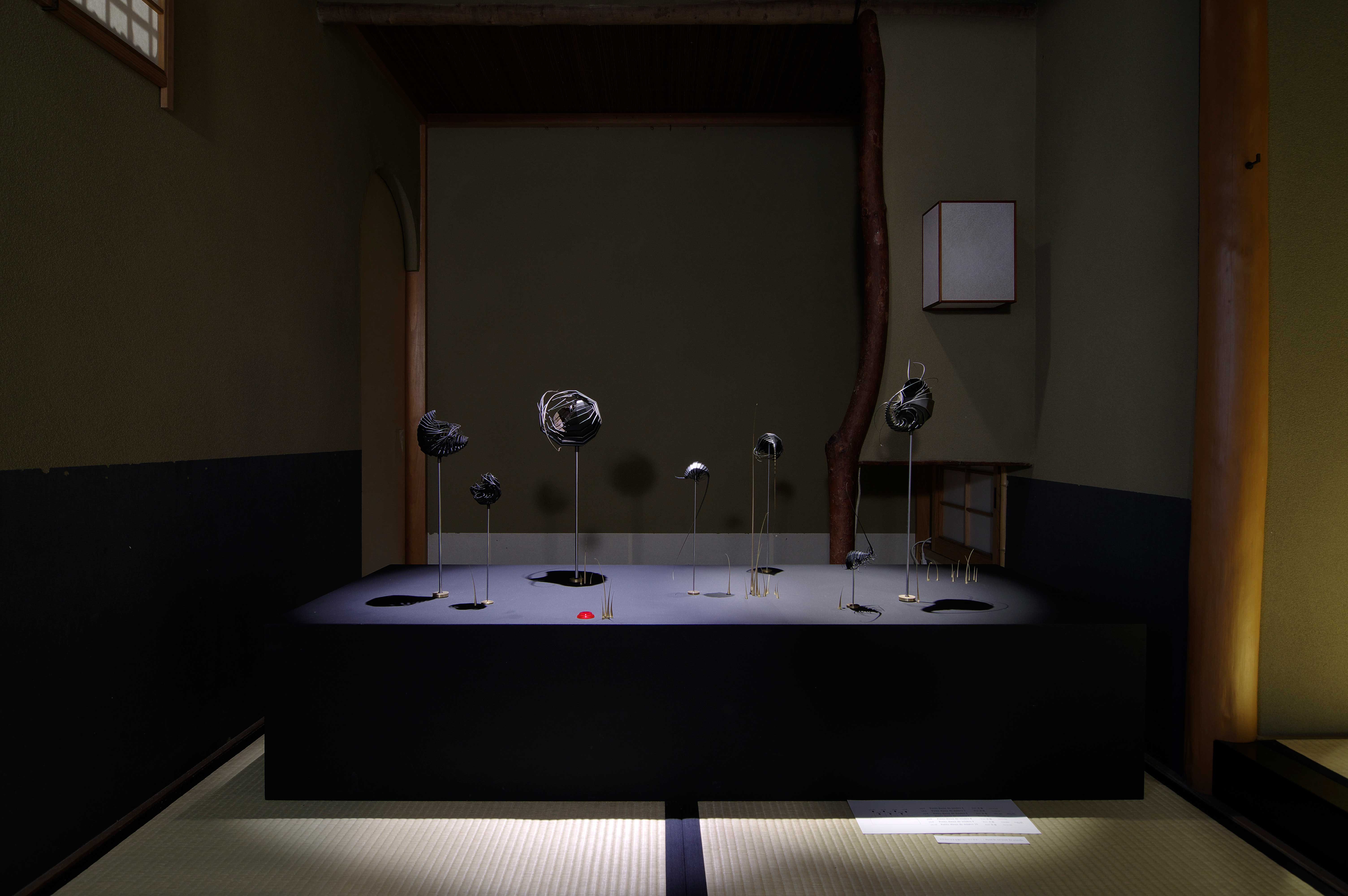 宝飾デザイナーのカルル・マズロ/ Karl Mazlo の展覧会「 Réflexions autour des Haïkus – 俳句を巡る考察 – 」と、銅系金属の旋盤加工のスペシャリストのミリン・グエン/ Mylinh Nguyen の展覧会「Petits dieux de misère – 取るに足らない小さき神々-」の同時開催。