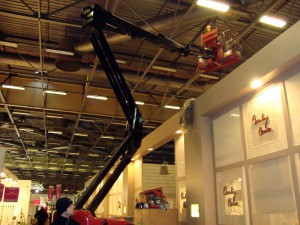 各国を代表するような企業ブースは大きく、設営は重機で行われます。