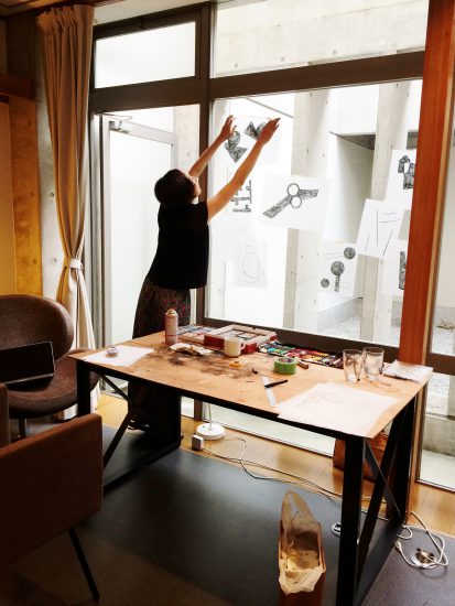 受賞当時の制作状況との兼ね合いで、レジデンス期間は2019年6月18日から24日までの7日間の日程となりました。ヴィラ九条山での制作期間と現地設備を考えると、私が普段取り組んでいるような金工制作を再現することは難しく、また、施設でのオープンスタジオ(一般の方も見学出来るよう施設を開放し、レジデントの滞在中の活動成果を発表する日)が滞在5日目になる6月22日の予定だったので、限られた時間と環境のなかでどのようなことをすれば自分にとっても有意義な滞在になるだろうと考えました。そこで、普段取り組んでいるような工芸制作とは一旦頭を切り離し、作品のアイデアやデザインを探る段階での感覚的な強化に繋がることをしたいと思い現地に臨みました。
