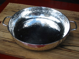 地球上の金属の中でももっとも熱伝導率の高い銀で誂えられたお鍋。焼け・煮えに偏りがなく、素早く加熱できるので大変美味しく仕上ります。すき焼き、しゃぶしゃぶ、など多彩な用途にお使いいただける純銀製の鍋は焦げ付きにくく、銀の滅菌性からいつも清潔なのが特徴です。