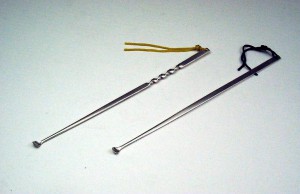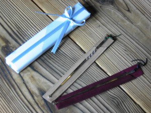 写真は2種あるうちの長い方(14cm)、他に携帯に便利な短いもの(10cm)も製作しています。長いほうにも2タイプあり、柄の部分が捻ってあるもの、シンプルな真っ直ぐの柄のものをご用意しております。