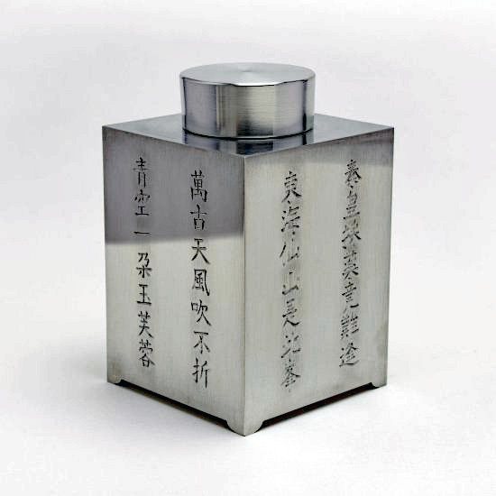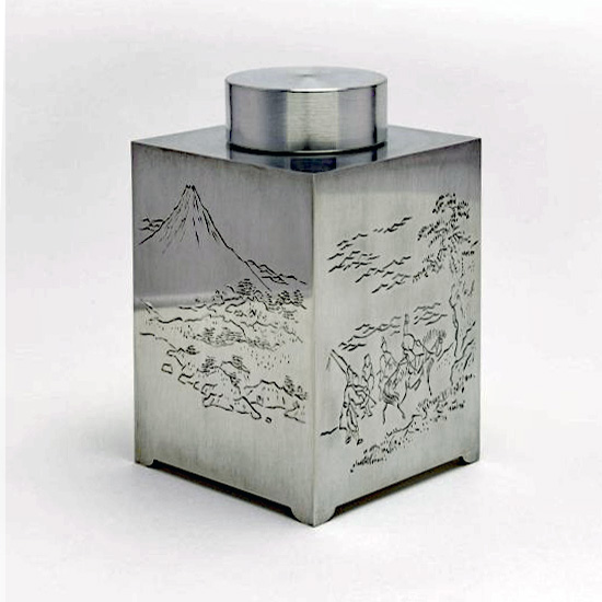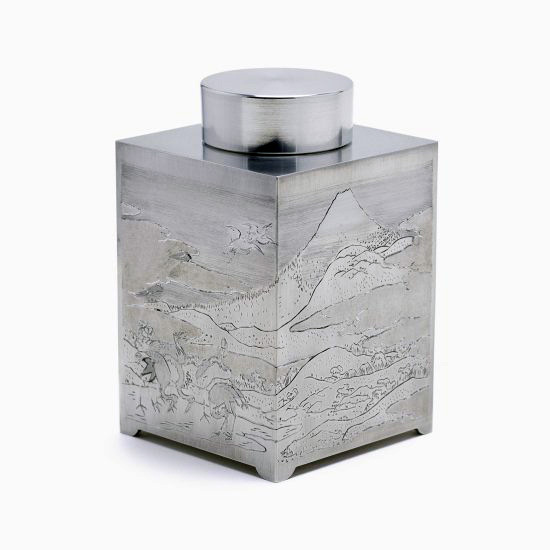 錫 四方茶入 富嶽遠景図 七鶴