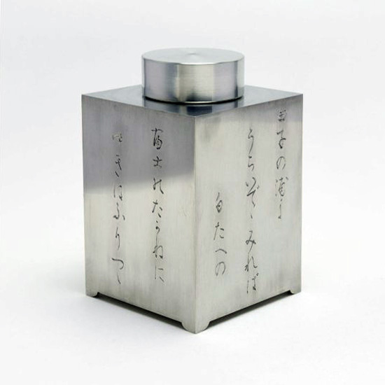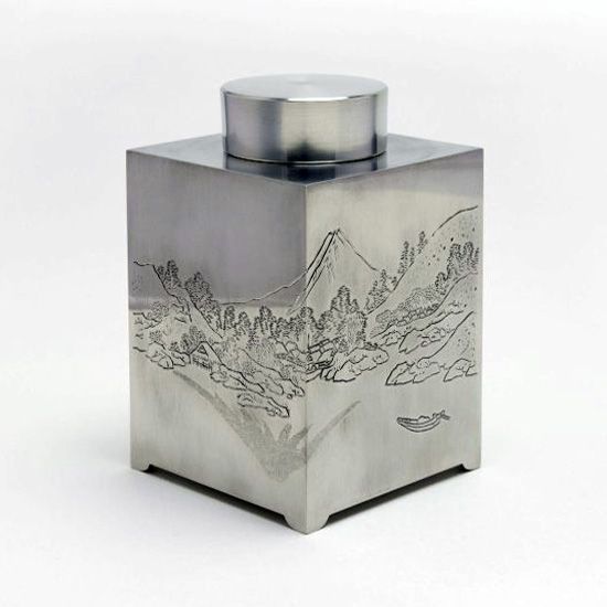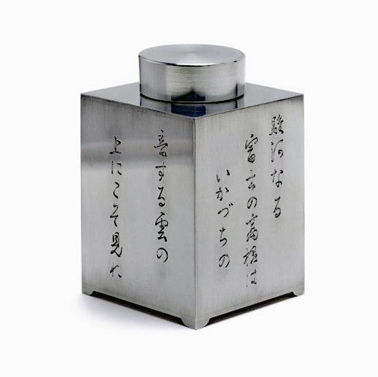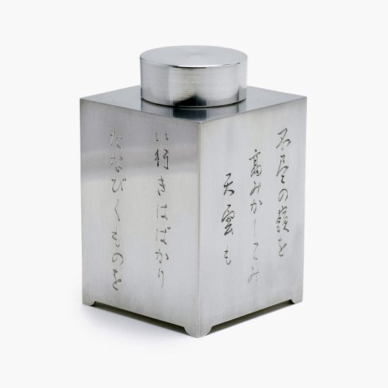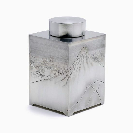 清課堂では、この美しく神々しい富士をそれにまつわる歌とともに錫製の茶入に彫り込みました。富士を題材にした連作として「錫 四方茶入 富嶽遠景図」をご用意しています。(5種 各1点:2023年5月現在)