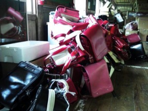 気仙沼市に送りつけられた、使い古しのランドセル1000個。つかわれることのないまま、いまだ山積みになっている状態。これが、被災地支援の現実。