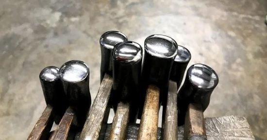 下圖中的鐵鎚乍看之下好像都一樣,但是每把鐵鎚凸起的圓弧高度都略為不同。