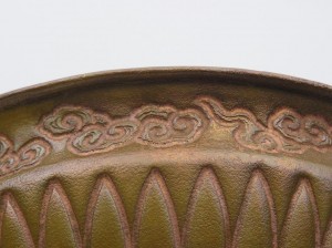 It is one of the representative Kensui of the Jyoueki, called ‘Kikuwari Kensui‘, chrysanthemum flower shape. We took the old one from the customer and maintained and repaired it. We removed the corrosion and water stains that had appeared in some places on the surface, and boiled it with special chemicals to re-colour it a beautiful yellow color.