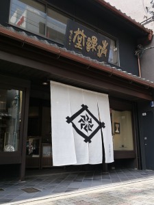 この暖簾には、(山中家)家紋の『 井桁に四目車 』をモチーフにした 清課堂ロゴマークがあしらってあります。デザインを手掛けて下さったのはgridGraphicさん!
