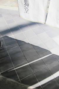 一枚の布は道行く人々とのよい距離感を保ってくれ、
