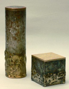 「金工」や「金属彫刻」の概念が覆されるよう。今回は、新境地を見出された熔文オブジェを中心に、花瓶や箱、装身具まで約70点を展示しています。緻密な彫金をディテールから見るも、荒々しい熔文を遠目から見るも、金属素材のもつ様々な表情をお楽しみ下さい。