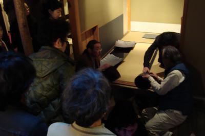 4/3 17:00トークショー。定刻になりぞくぞくと詰め掛けた来場者は、彼からそれぞれの作品に対する解説をしっかりじっくりと聞き込みました。斬新かつ研究を重ねた技法には、来場のクリエーターたちから多数の質問が寄せられました。それまでおぼろげに作品から見え隠れしていた彼の思考が、お話を聞くことによってくっきりと浮かび上がりました。その後、参加者一同は近くに位置するC.A.J.ギャラリーへと場所を移し、ちょうど同じ時期に開催されていた彼のジュエリー展を見学しました。彼から作品解説いただいたあと、参加者の交流会が催されました。