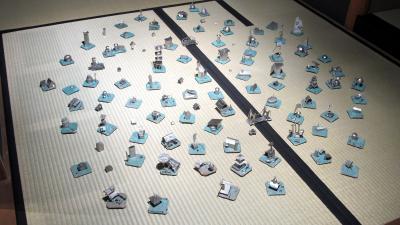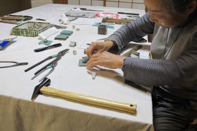 作品とあわせて、今回展覧会での重要なイヴェントであったのは来場者参加型のプロジェクト、「小さな家づくりワークショップ」だ。開催期間中随時、ご来場いただいた方に「錫」の板を切ったり曲げたり叩いたりして頂き、それを組み立ててそれぞれの思うがままの小さな家をつくっていただいた。それを専用会場として用意された茶室にて配置し、2週間の会期をもって「大きな街」を作り上げるワークショップであった。 このイヴェントには、4つの大切な要素が盛り込まれていると考える。まず、普段は触れることはまずない、金工の道具と材料に触れて親しんでいただくことだ。これはまず誰もが直感的に「楽しい、おもしろい」と感じたことだと思う。未知のものを体感するということは、単純にこころ揺さぶられることだろう。 二つ目は、京都清課堂を会場にして開催しているということだ。ワークショップ会場の和の空気を感じ、錫の老舗で錫の材料に触れていただくことで、京都、または清課堂そのものを身近に感じていただいたことだろう。この会場ならではの空気が、このワークショップにあったと考える。これらは、このワークショップのもつ「エキスペリエンス(体感)」の側面だ。 さらには、老若男女の来場者が一体となって街、すなわち一つの作品をつくり上げてゆくという作業。これは、単に体験という切り口で時間を費やし個別の作品作りをするだけではない。100戸近い家が立ち並ぶ壮大な街づくり計画に参加していただいた。これも普段の生活ではなかなか味わえない貴重なものだし、また作られた街は壮観で完成された一作品となった。 最後に、作家である丸山祐介本人が会期中出来うる限りワークショップの講師として在廊したことにも大きな意味があった。ワークショップを通して、来場者の方々と文字通り膝を突き合わせて作家と時間を共有出来たことは、作品を並べ見せるだけの展覧会とは違う次元のコミュニケーションであり、作家と来場者の距離を縮めた強力なイヴェントだった。丸山自身も、今後もこの活動を続けていきたいと言っていた。