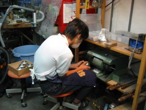私共の仕事は、製品・作品の開発から設計、型作り、実製作、化粧、陳列から販売、アフターサービスまで、非常に幅が広く過程の長いものです。その一つ一つを掻い摘みながら、短い時間で実地体験します。モノづくりに携わる仕事とはいえ、実際に手を動かして物を作る作業ばかりではありません。