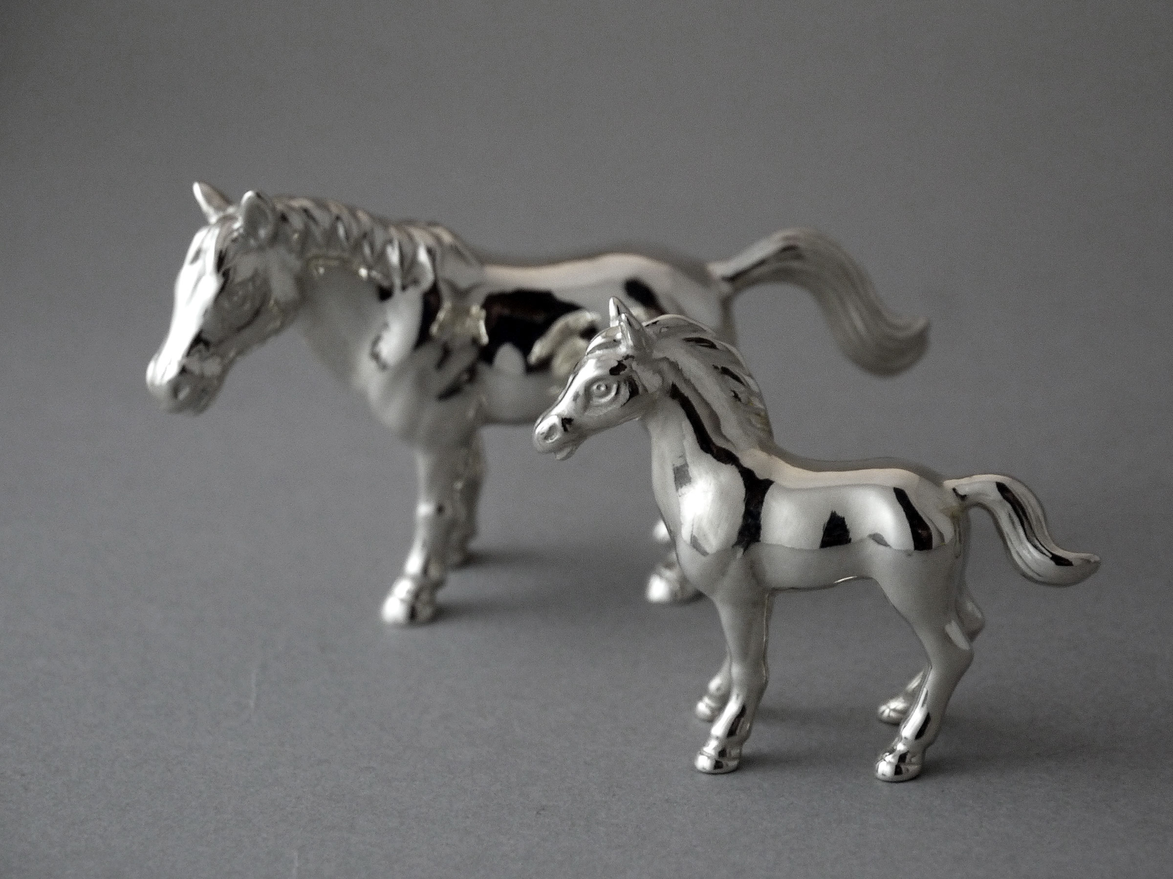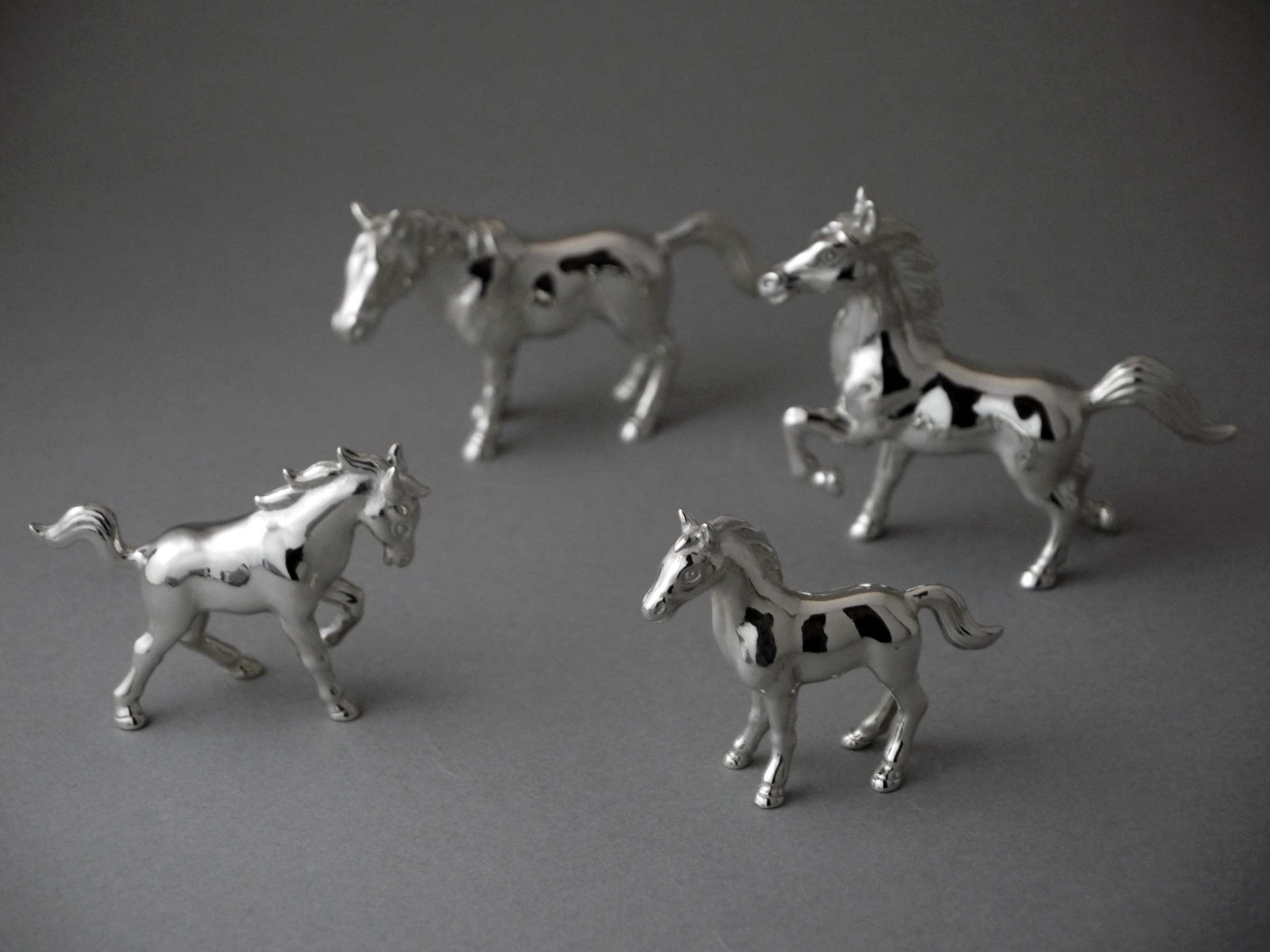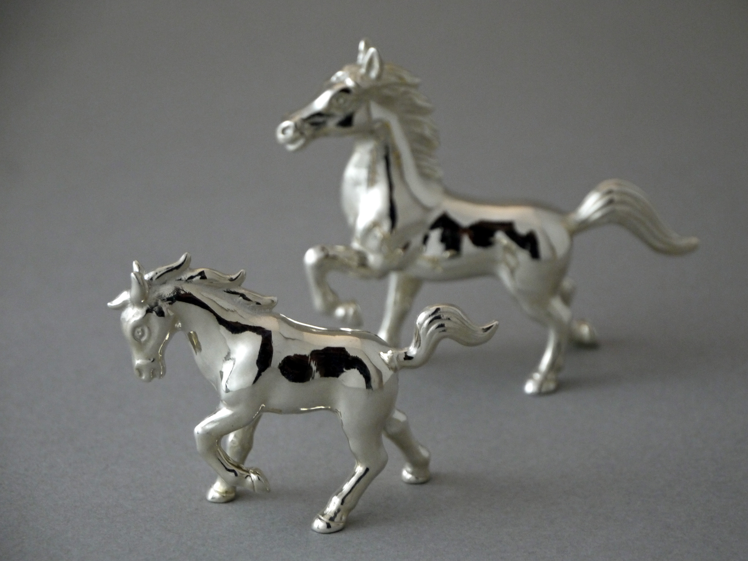 力強い牡馬とやさしい表情の牝馬、それぞれ姿勢違いの大小、合計4体を製作しました。
