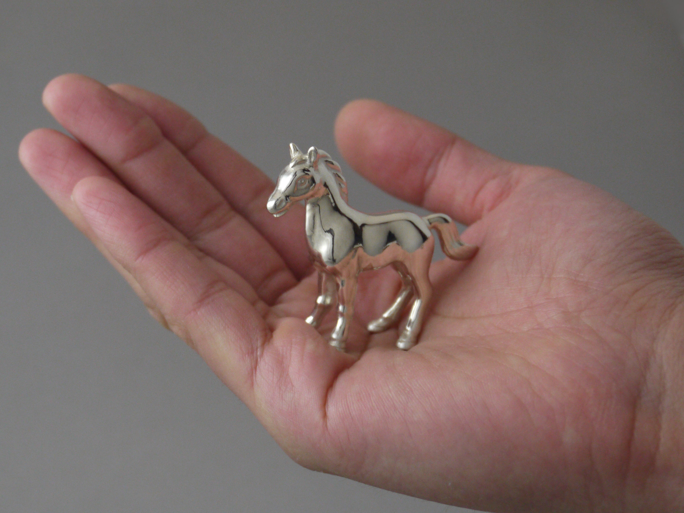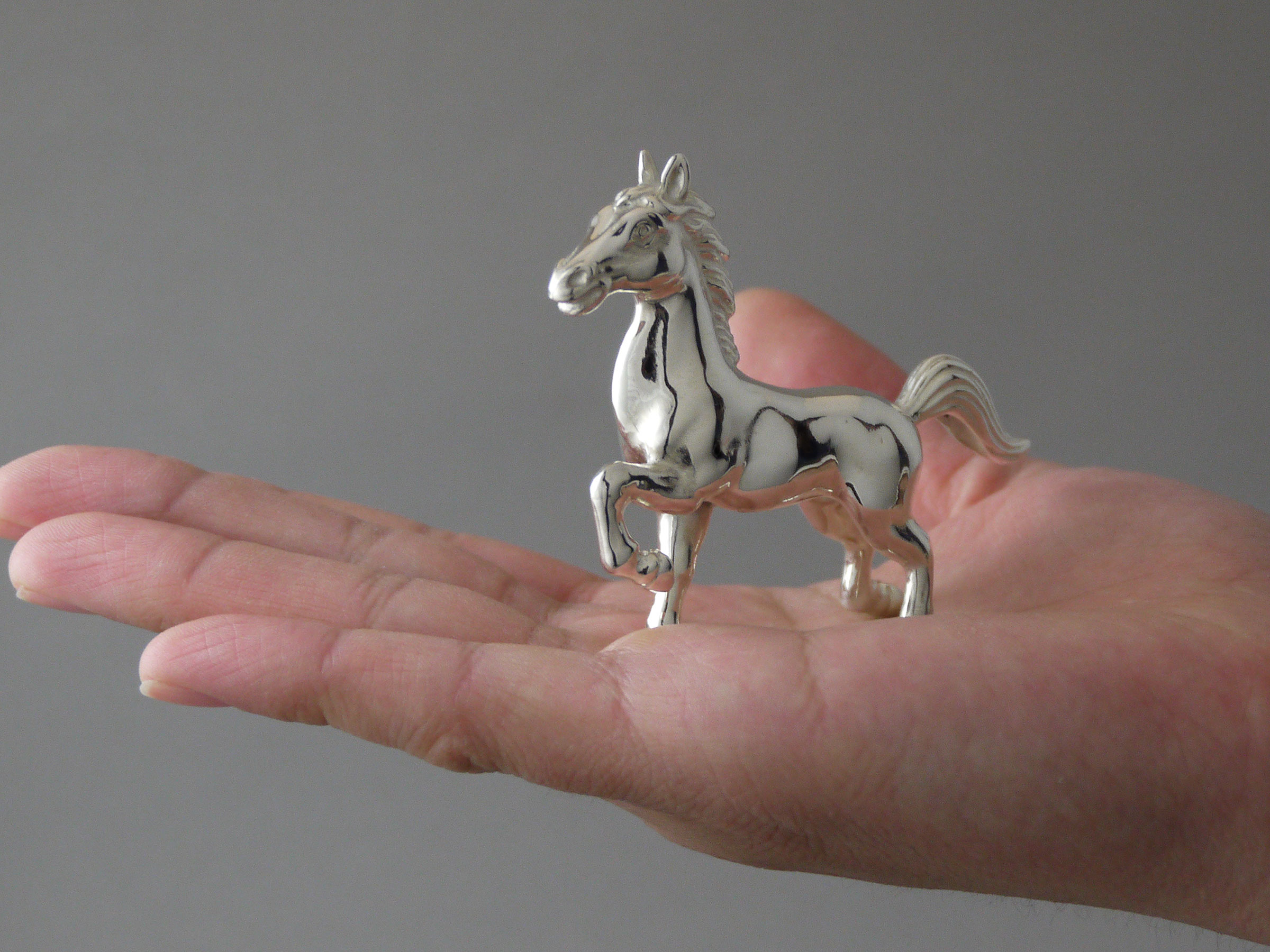 大きさは、手のひらにおさまるほどの小ぶりの置物です。銀95%製