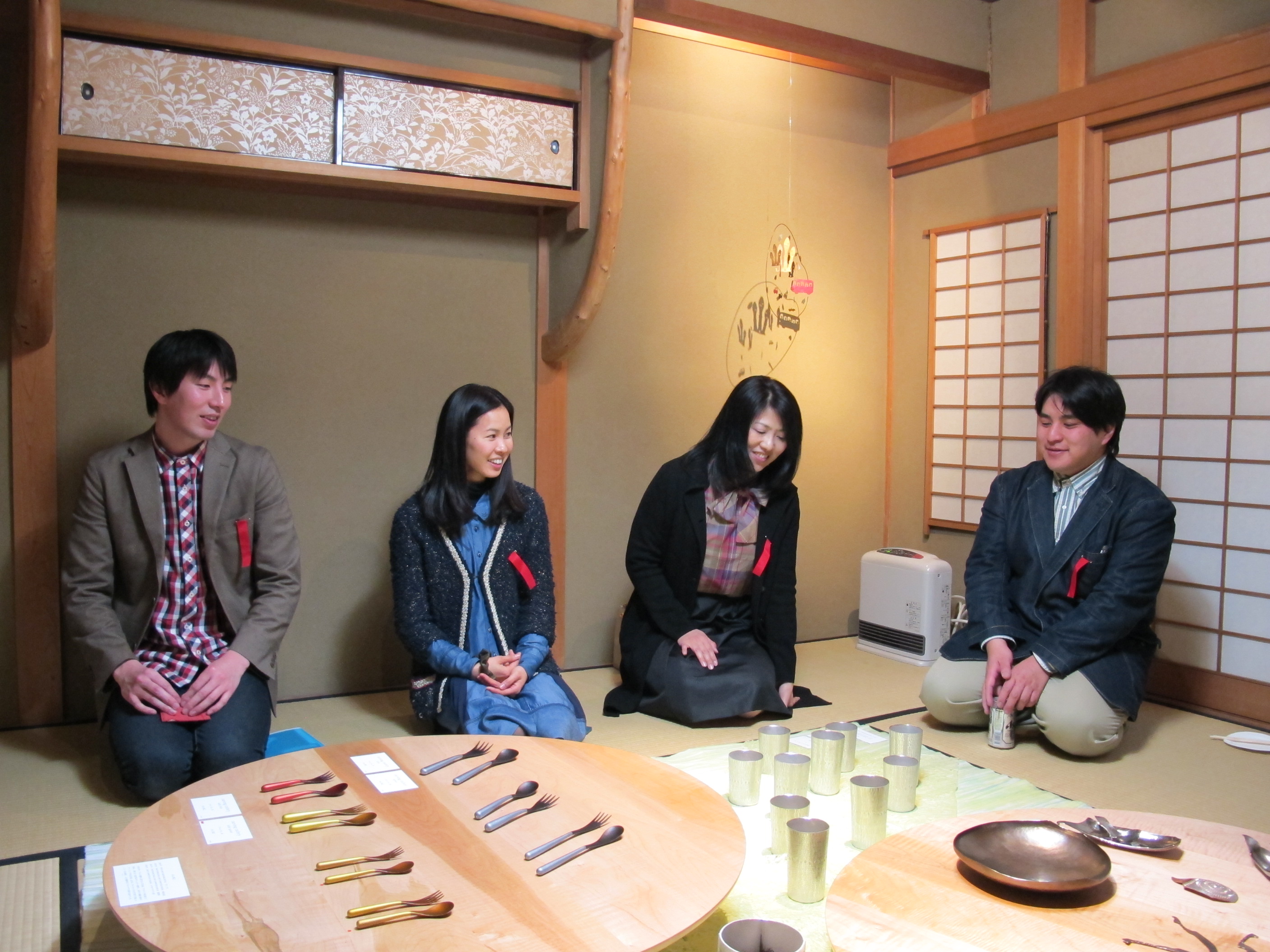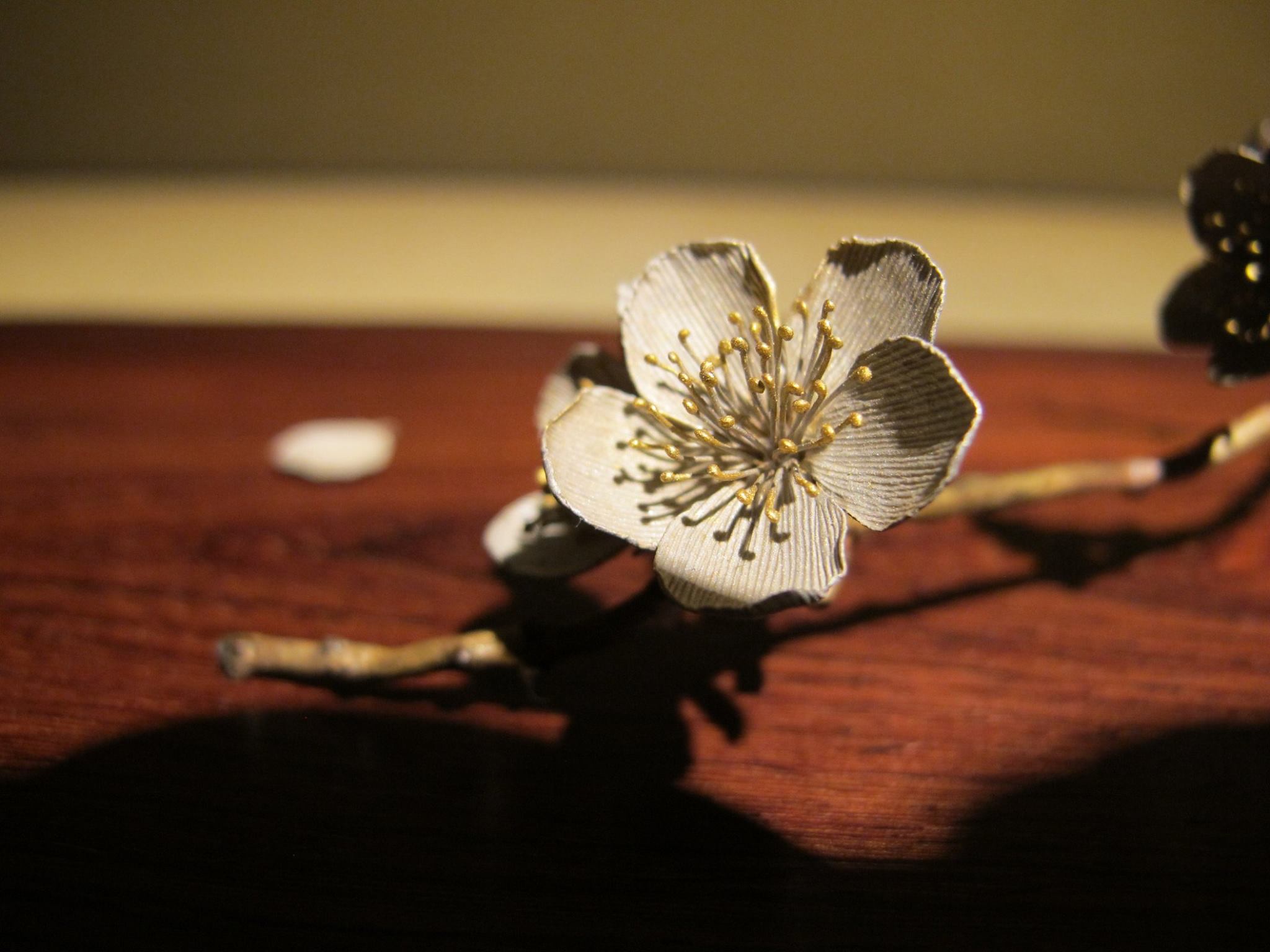 桜の時期とも重なり、海外からの観光のお客様も含め多く方にご来場いただきました。清課堂ギャラリーにある蔵、茶室、和室のそれぞれの空間を用いて様々な作品を展示いたしました。14名の作家が得意とする金工技法、金属素材はそれぞれの持ち味があり、それらを巧みに活かした茶器、スプーンなどの生活道具、壁面に飾ったり、生活空間を彩るオブジェなど、さまざまな作品が一堂に会しました。