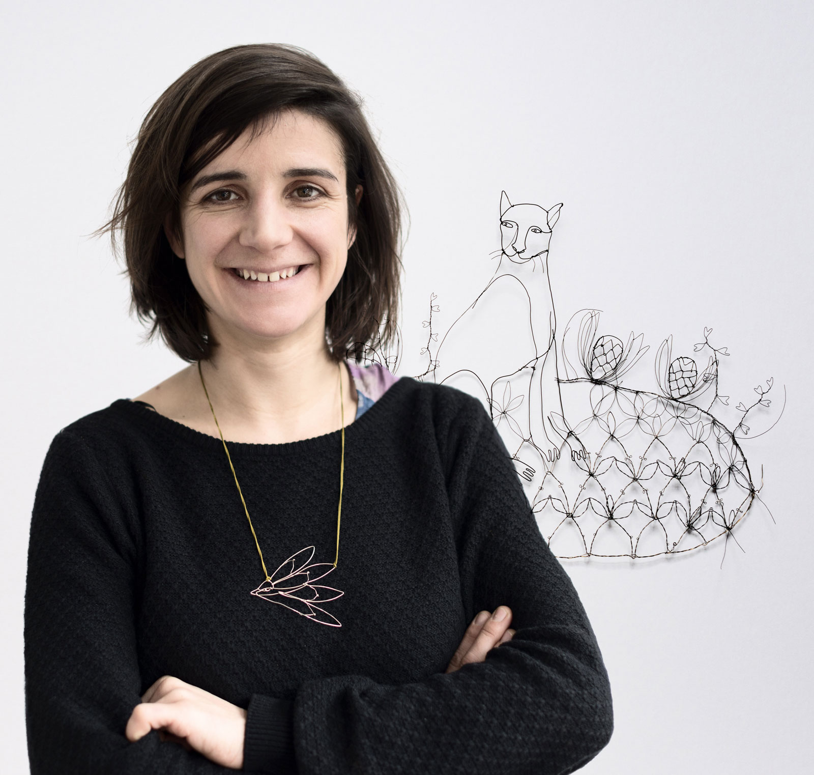 1979年生まれ。フランス、ル・アーブル出身。パリの応用芸術学院と装飾美術学院で学ぶ。伝統的なレース編みの職人との出会いから強くレース編みに魅せられ、アーティストとしての人生に転機をむかえる。ボビンレースという消えゆきつつある無形の遺産を受け継ぎ、ボビンレースの新たな活用法を模索し繊細なワイヤーを編み作品として私達に伝えています。Paris在住。2010年には清課堂にて3ヶ月にわたり滞在製作、2010年、2014年と過去2回の個展を開催。