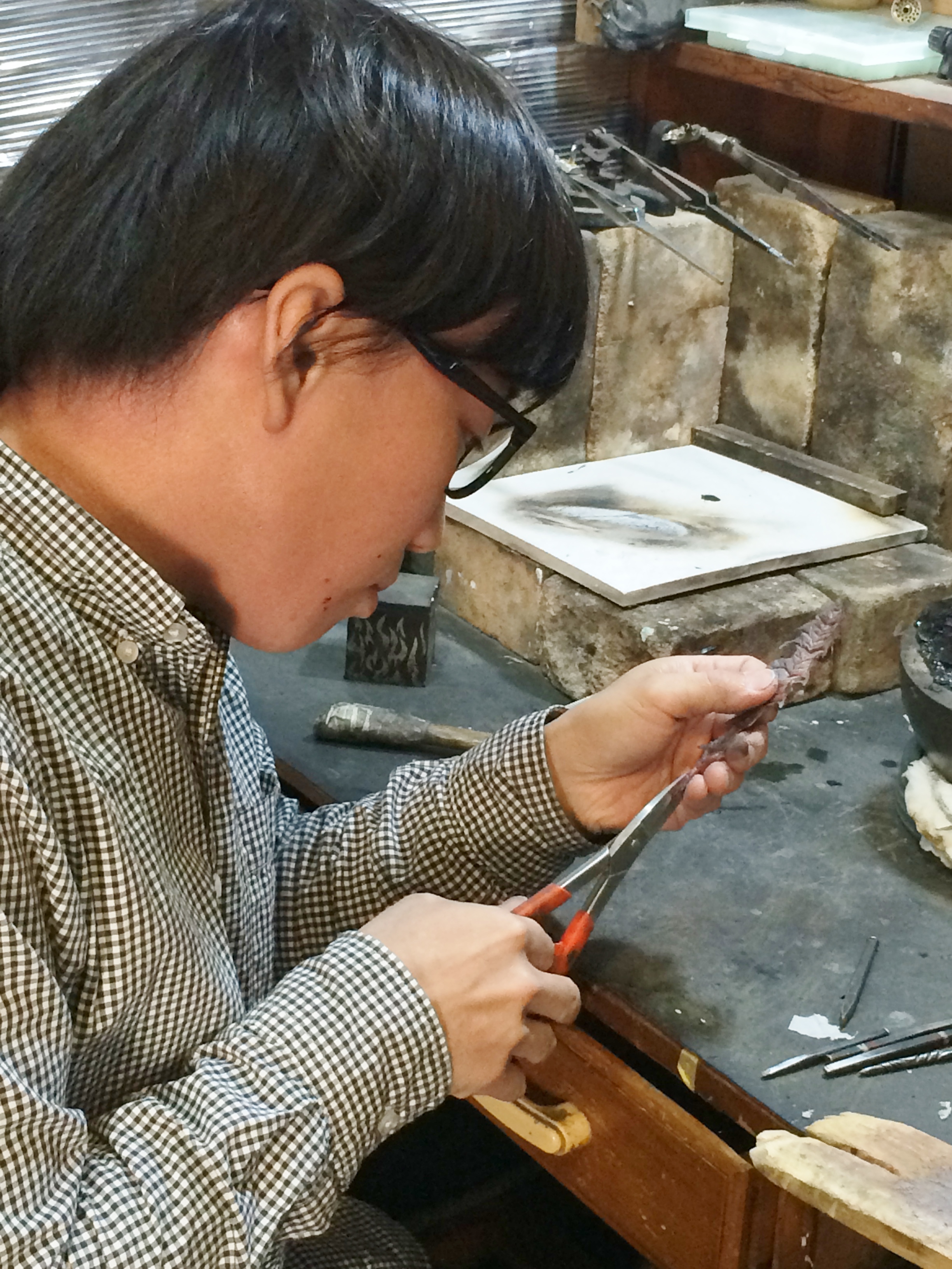 鈴木の好きな声が流れる工房に、金属を叩く音が響いている。
